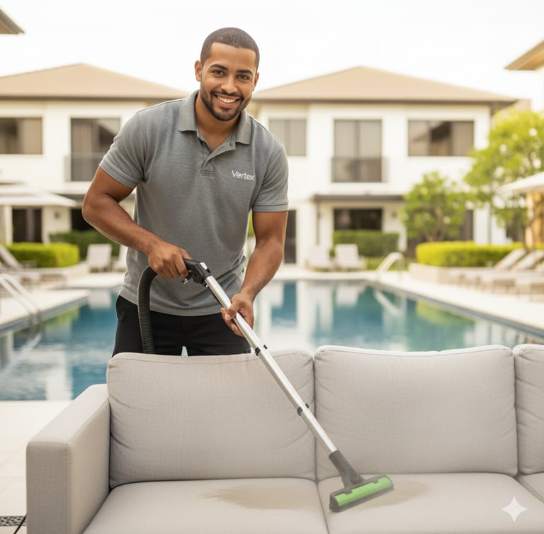 Oferecemos em todos os nossos planos o serviço extra de extração de estofados e carpetes. É um diferencial para manter seu condomínio impecável.